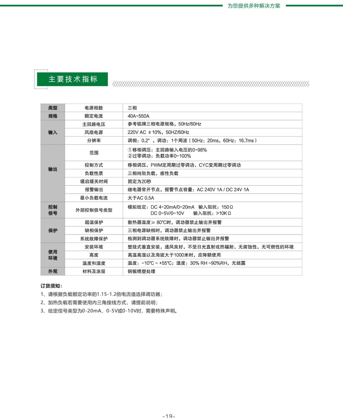★工業(yè)級32位ARM核主控MCU; ★采用移相調(diào)壓和兩種模式過零調(diào)功一體化技術(shù); ★輸出電壓電流線性化; ★支持0-20mA、4-20mA、0-5V、0-10V信號輸入(默認(rèn)4-20mA,其他訂貨聲明); ★調(diào)功器散熱超溫保護、電源缺相保護、調(diào)功器系統(tǒng)故障保護; ★可定制開三角形控制方式;